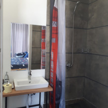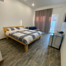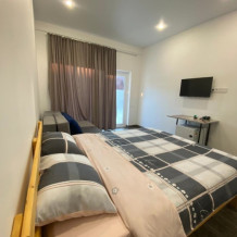 Предлагаем 5 номеров с отдельными входами и панорамными окнами. Возле каждого номера есть зона с удобной мебелью, где вечерами можно провести время, отведав вкусного шашлыка, приготовленного на мангале (все принадлежности предоставляем). В номерах современная мебель, все удобства: ТВ, кондиционер, холодильник, санузел с новой сантехникой. Стиль минимализм.