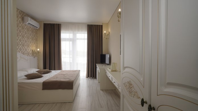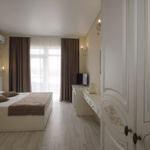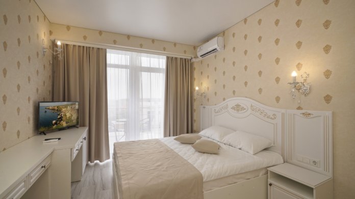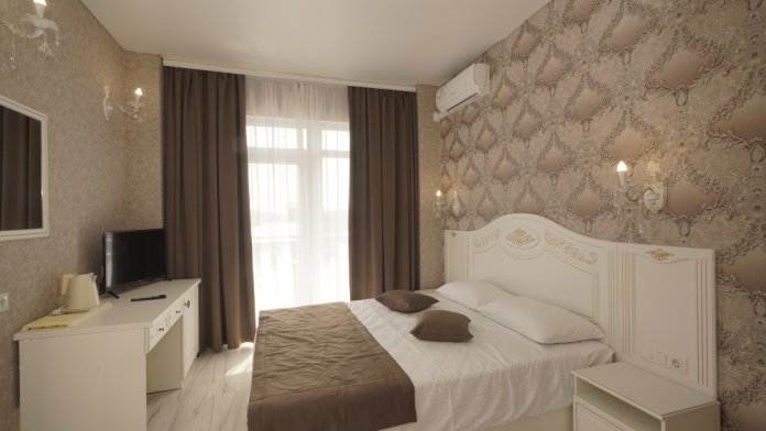 Предлагаем Вам 17 номеров класса стандарт с 2,3,4-местным размещением и 3 номера люкс с размещением 4+1, один номер студия с кухней. В каждом номере санузел, туалетный набор, фен, полотенце и тапочки. В каждом номере кондиционер, телевизор, чайный набор, сейф.
