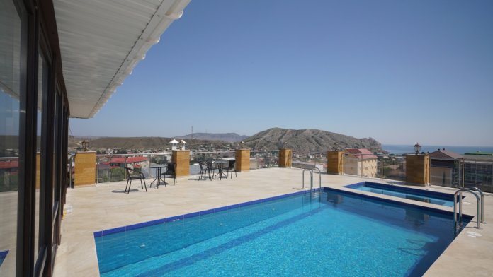 Новый гостевой дом с бассейном и джакузи. Отличный панорамный вид на море, горы и генуэзскую крепость Судака.