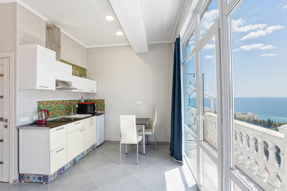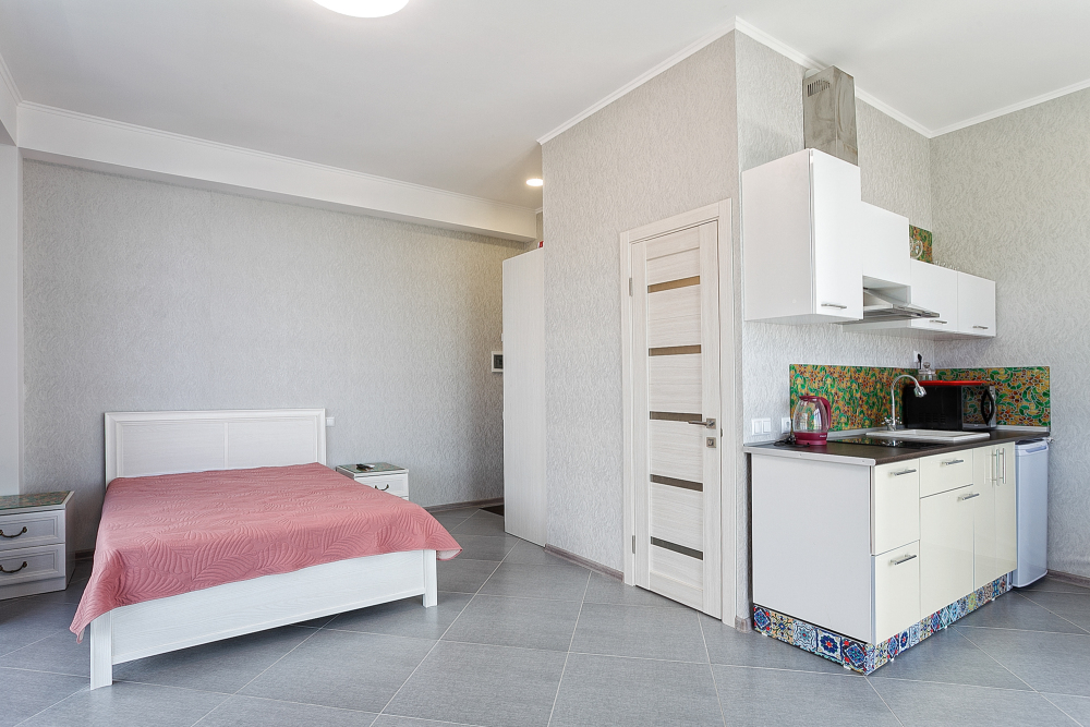 Однокомнатная квартира-студия, с потрясающим видом на бескрайнее море и гору Кошку, на шестом этаже.