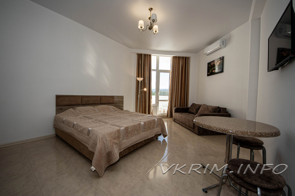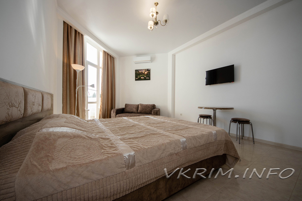 Для комфортного отдыха в Феодосии предлагается в новом элитном комплексе Черноморская набережная, уютная квартира-студия с красивым видом на Феодосийский залив.