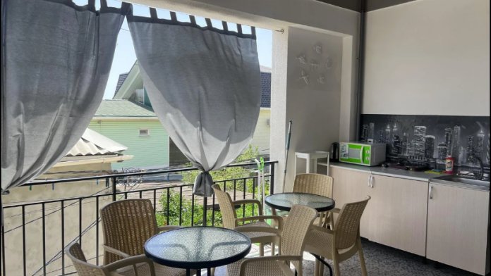 Номер 4-местный на 2 этаже, кухня на террасе на 3 номера.