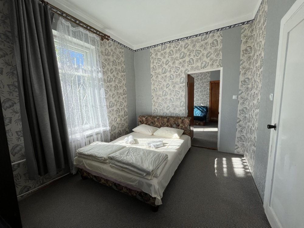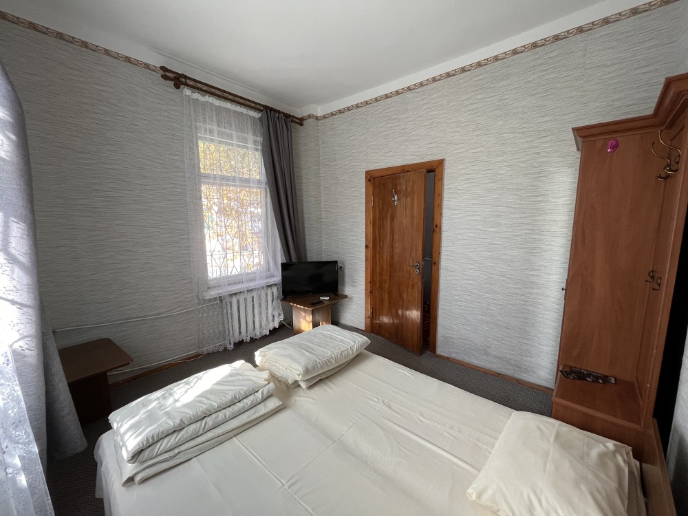 2-местный улучшенный номер с двуспальной кроватью и диваном. Номер светлый, просторный, со своим санузлом. Телевизор, холодильник, Интернет WI-Fi, полотенца, постельное белье.