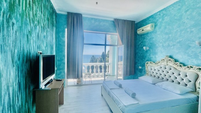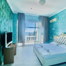 Однокомнатный номер расположен в цокольном этаже старинной виллы. Панорамные окна номера выходят на южную сторону. С балкона открывается вид на море. Из каждого номера есть выход на террасу. Односпальные кровати в номере по желанию гостей сдвигаются вместе.