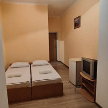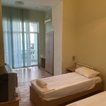 Просторный двухкомнатный номер в старинной вилле. Балкон номера с видом на парк и г. Ай-Петри. Односпальные кровати в номере по желанию гостей сдвигаются вместе. Количество спальных мест может быть увеличено до 5.