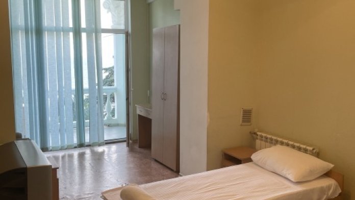 Просторный однокомнатный номер в старинной вилле. Балкон номера с видом на парк и г. Ай-Петри. Односпальные кровати в номере по желанию гостей сдвигаются вместе.