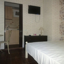 Номера «Стандарт» 2-х местный. Возможно поставить дополнительное спальное место. Находится на втором этаже. Всего номеров на этаже два. В номере есть 2-х спальная кровать, шкаф, комод, холодильник, телевизор, кондиционер, полотенца, фен, средства личной гигиены.Так же на этаже находится своя большая кухня со столиками, чайник, СВЧ, плита, вся необходимая посуда, моющее средства доя посуды. Возможно заселение одной семьи из 4-6чел., а так же две семьи по 3 чел. Так же парам или одной компании.