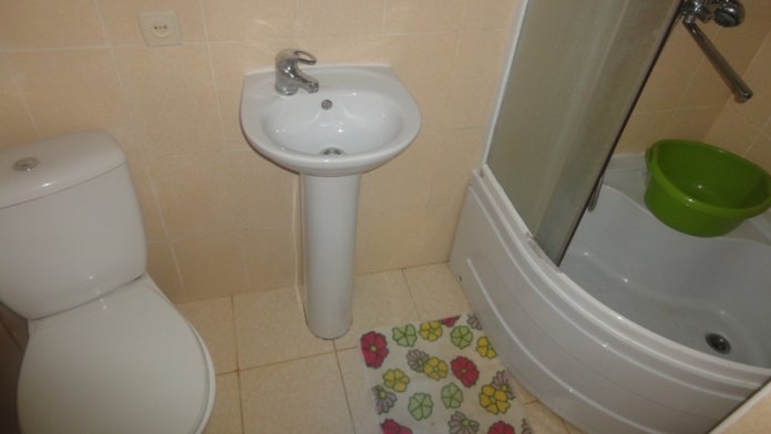Трехместный эконом, в нрмере есть три кровати, пенал для вещей, столик, холодильник, телевизор, вентилятор. Душ и туалет общего пользования на территории. Кухня общая оснащена всем необходимым, две плиты, микроволновка, чайник, прсуда. При нрмере во дворе есть сврй столик со стульчиками.
