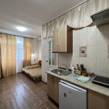 Сдается уютная однокомнатная студия со всеми удобствами, который расположен рядом с парком в центре поселка. Площадь студии – 19 кв. м. Расположиться в студии может до 3х человек. В однокомнатной студии 2-х спальный и односпальный диваны, санузел, кухня, кондиционер, телевизор, шкаф. Рядом с домом: магазины, парк, детская площадка.