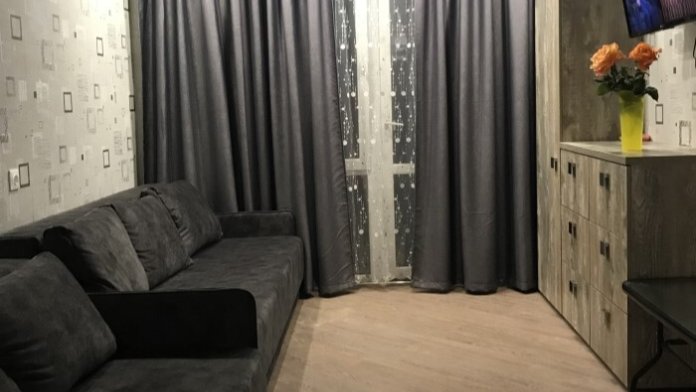 Квартира-студия оснащена всем необходимым для комфортного проживания. В квартире есть: диван, телевизор, кондиционер, шкаф для одежды, полноценная кухня со всей необходимой техникой и посудой, ванная комната, стиральная машина. Есть балкон.