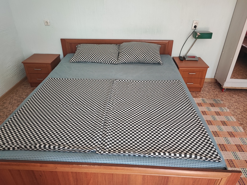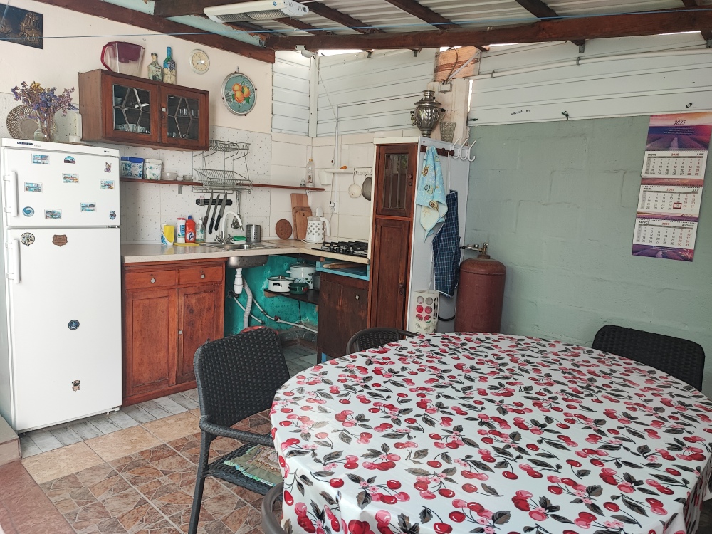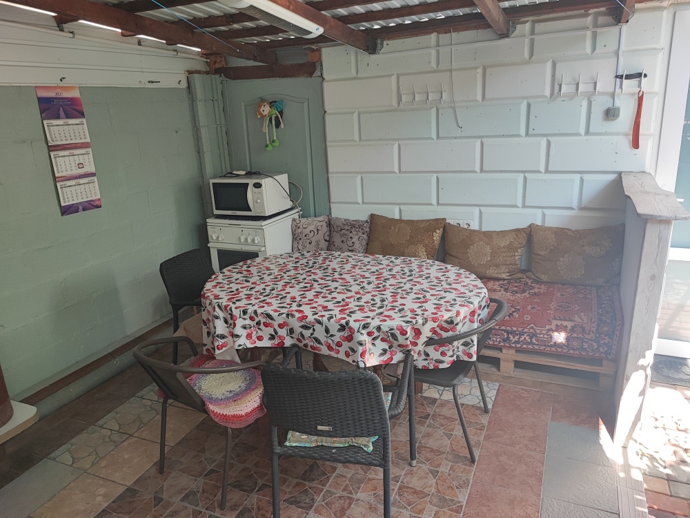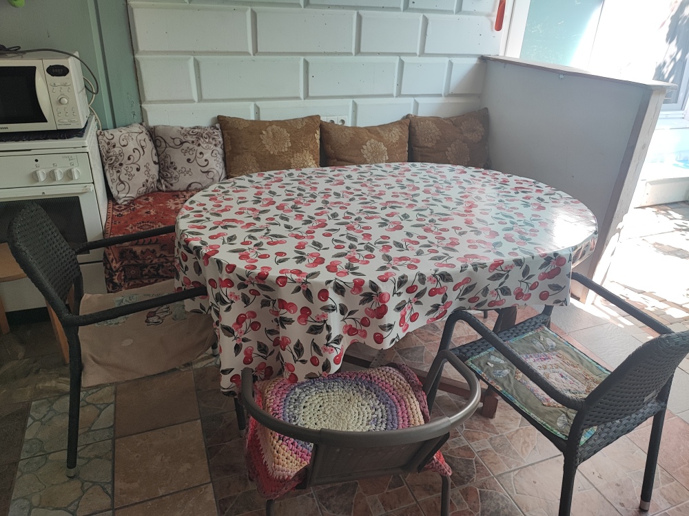 На первом этаже расположена комната с большой двухспальной кроватью, односпальным раскладным диваном и раскладным мини-диваном. Также в комнате, на первом этаже есть телевизор со Smart TV и кондиционер. В каждом из номеров есть шкаф для вещей. На улице, возле комнаты, находится веранда с обустроенной кухней и холодильником. Рядом с номером расположен совмещенный душ с туалетом и отдельный туалет. Помимо всего прочего на территории дачи есть мангальная зона со всем необходимым для готовки. Кстати,окна номера оснащены защитой от ультрафиолетовых лучей.