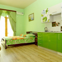 В нашем отеле десять номеров, в которых есть все, что необходимо для комфортного отдыха (уютная современная мебель, в каждом номере своя кухня с посудой, wi-fi, санузел, ТВ, кондиционер, холодильник).