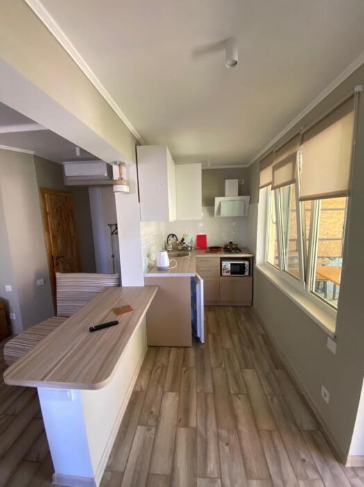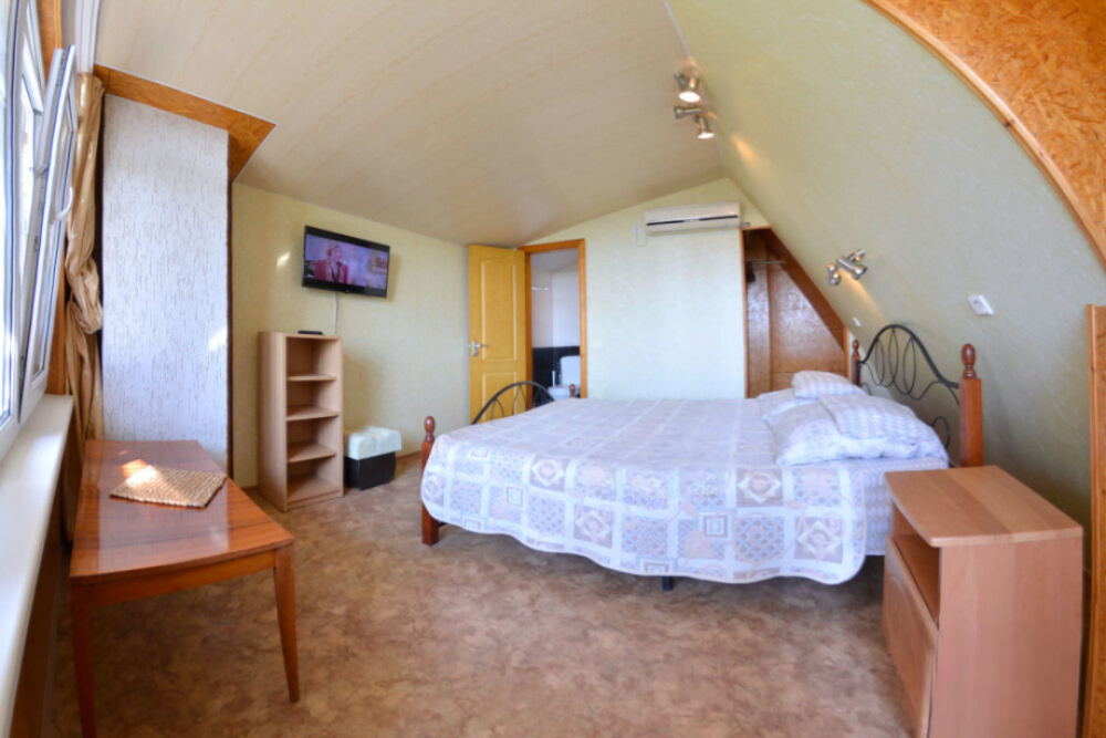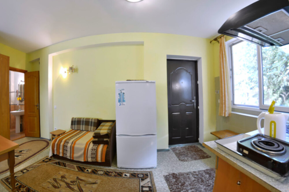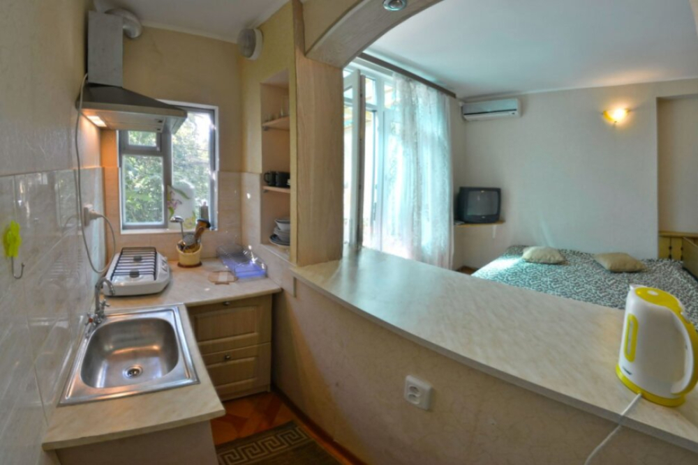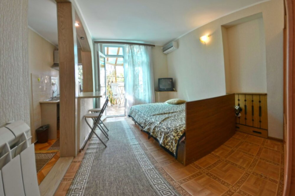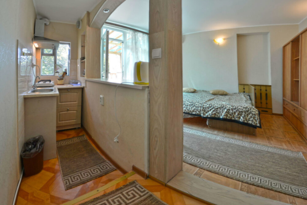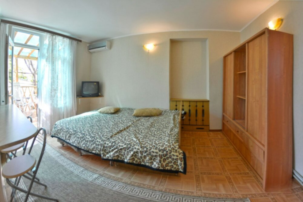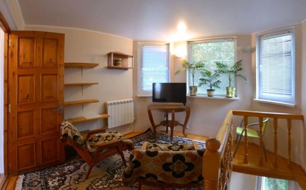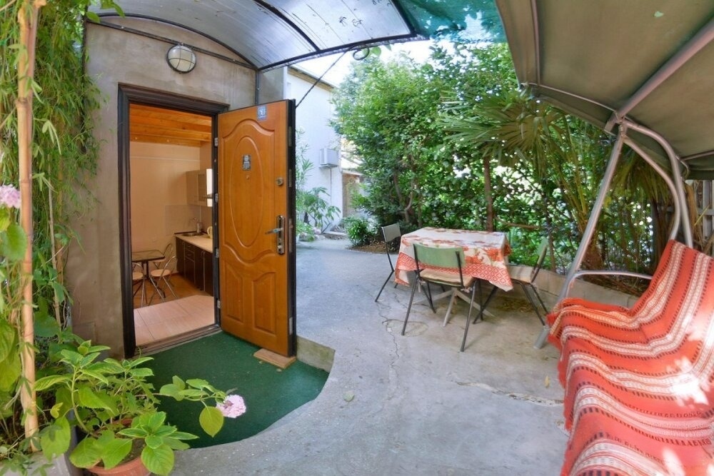 Частное домовладение со своим закрытым и утопающим в зелени двором. На территории - несколько номеров квартирного типа со своими отдельными входами и террасам для отдыха на воздухе. У каждого номера есть своя часть двора со столиком и стульями. Общая видовая терраса с шезлонгами и возможностью позагорать. Есть мангал, но пользование по договоренности с владельцами.