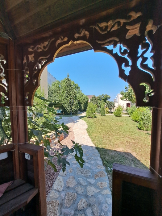 На втором этаже расположены номера со всеми удобствами для 3х гостей. В номере двуспальная и полуторная кровать, телевизор, холодильник, кондиционер, санузел с тропическим душем. Садовая мебель на балконе.