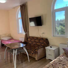 Уютный номер, с прекрасным видом на море. В номере есть все необходимое для комфортного проживания. Подойдет как для пары, так и для друзей,подруг. Номер с одной двухспальной кроватью или двумя раздельными. В номере есть встроенная кухня с микроволновкой, варочной панелью и электро-чайником. Подойдет как на длительный срок, так и посуточно.