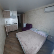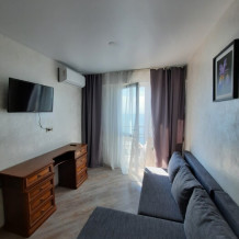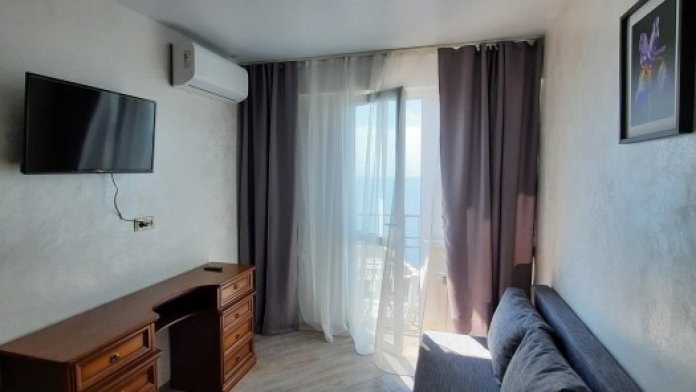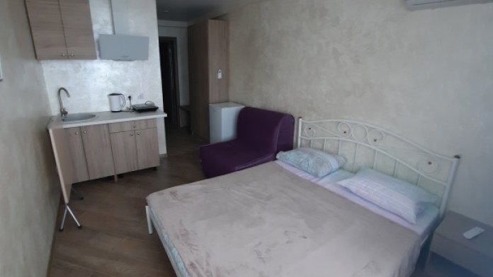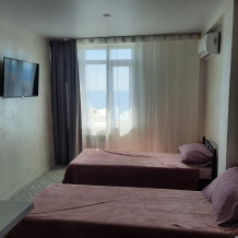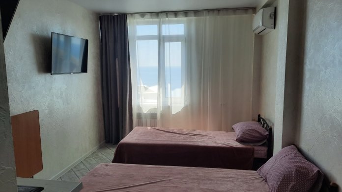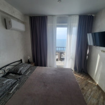 В комнате от 1 до 5 спальных мест. Кухня в каждом номере (плита, вытяжка, посуда). Все номера с видом на море.