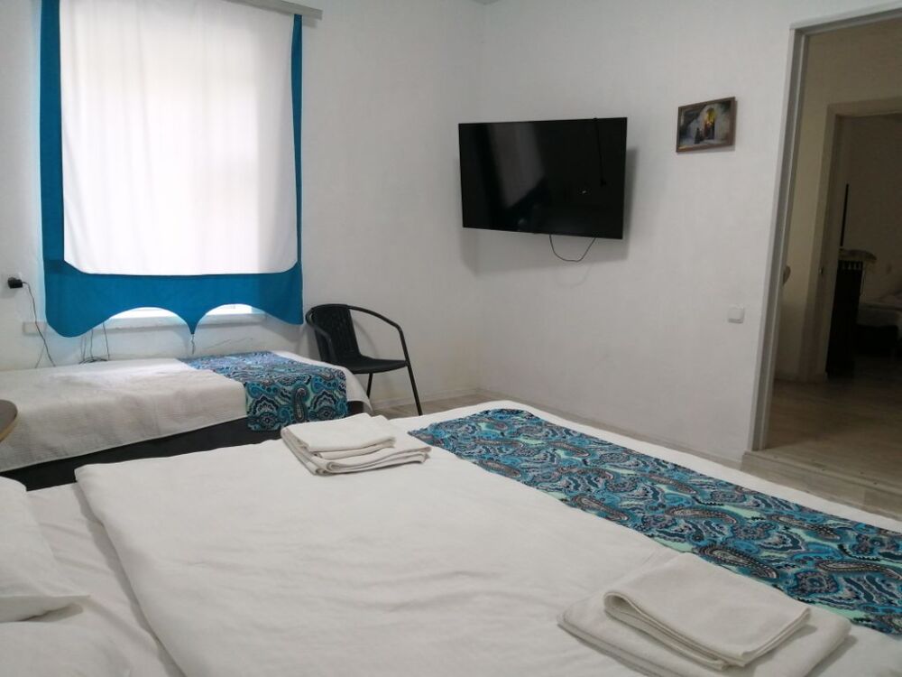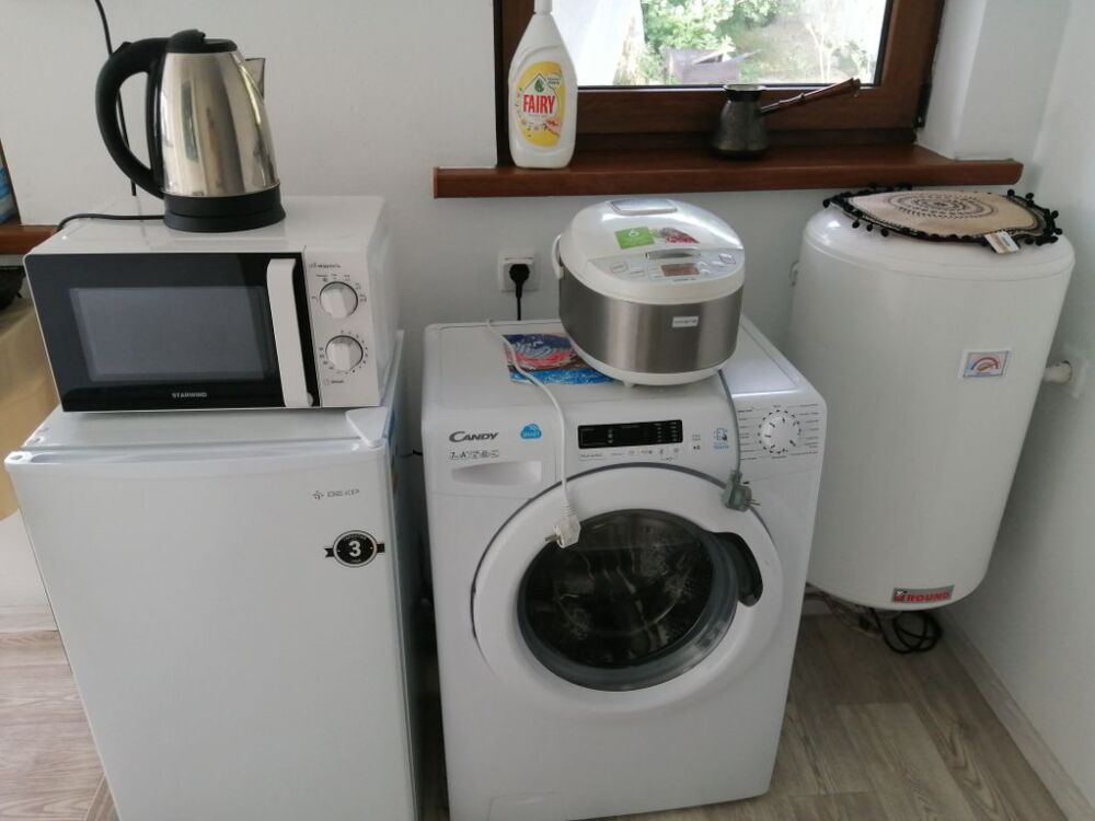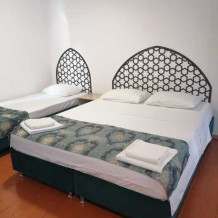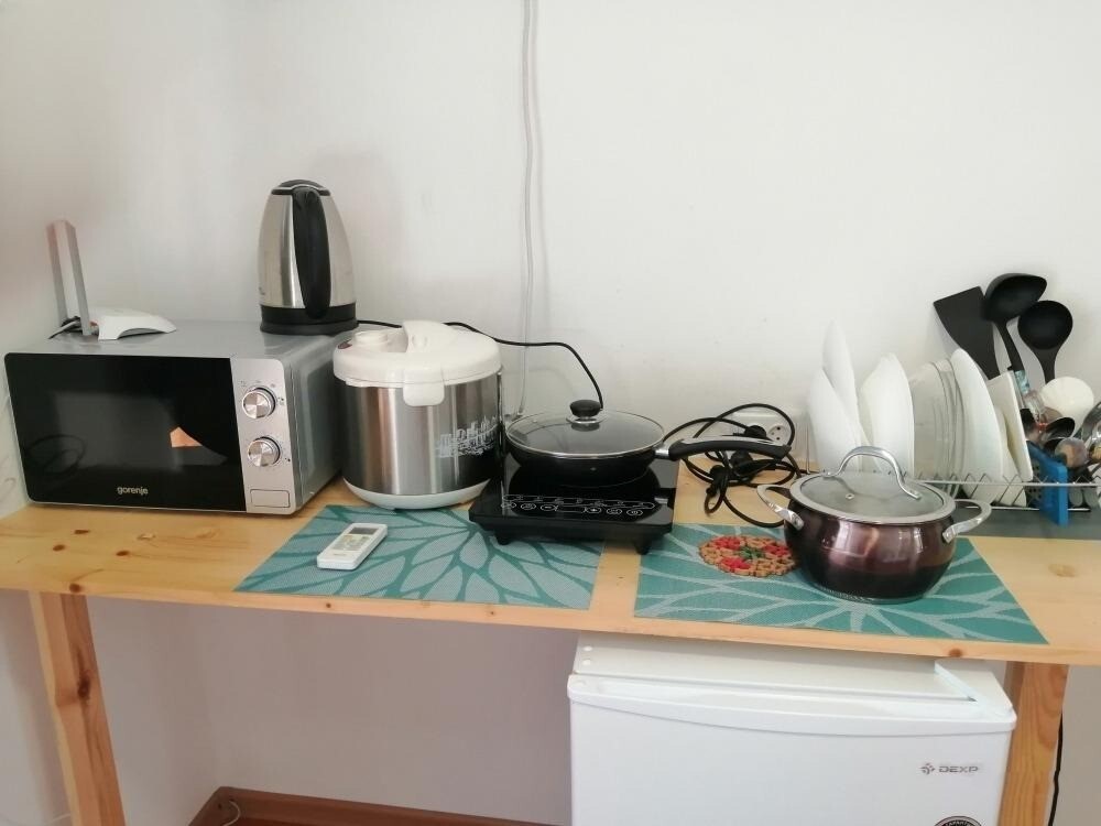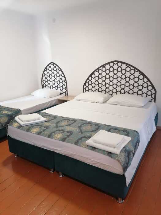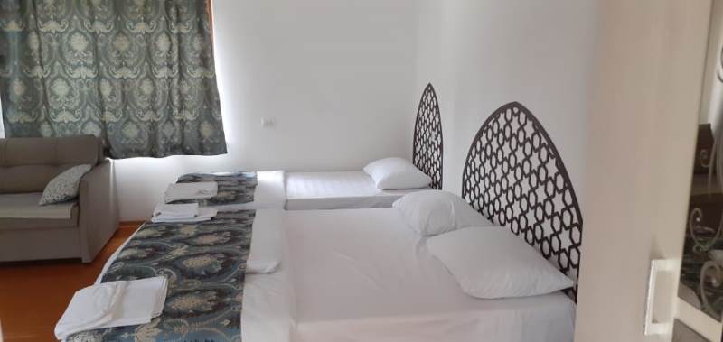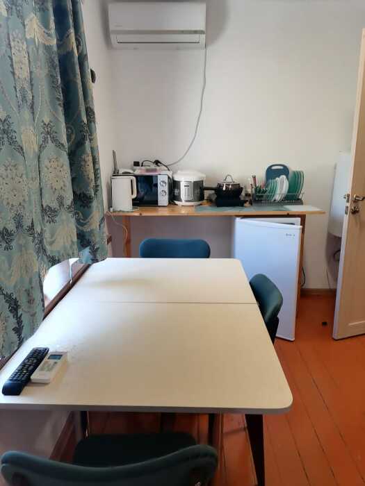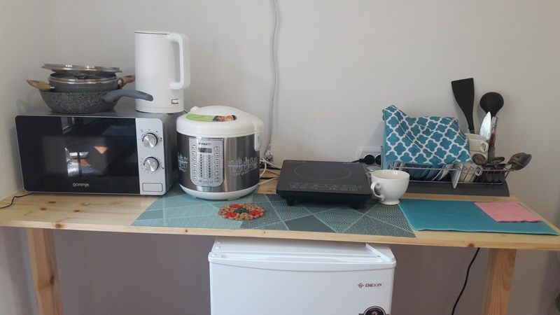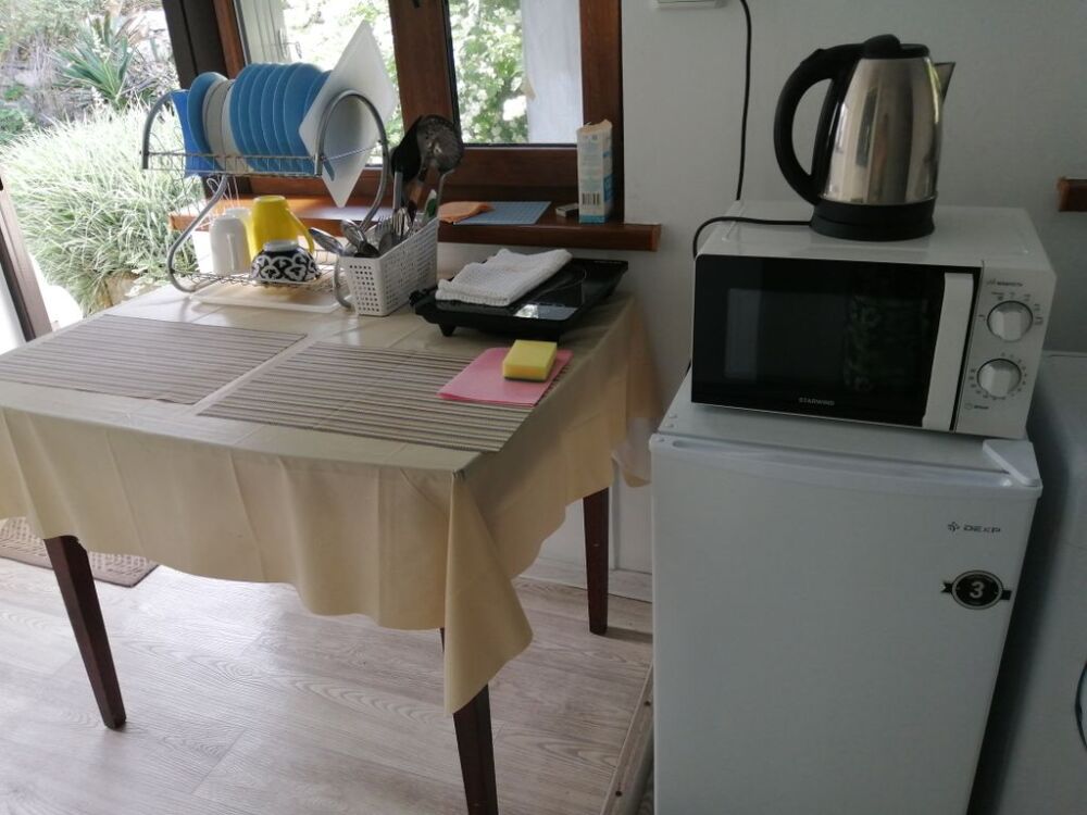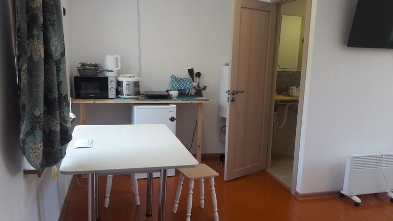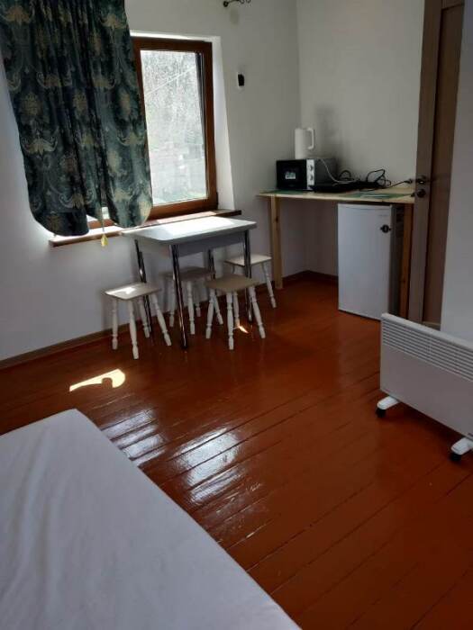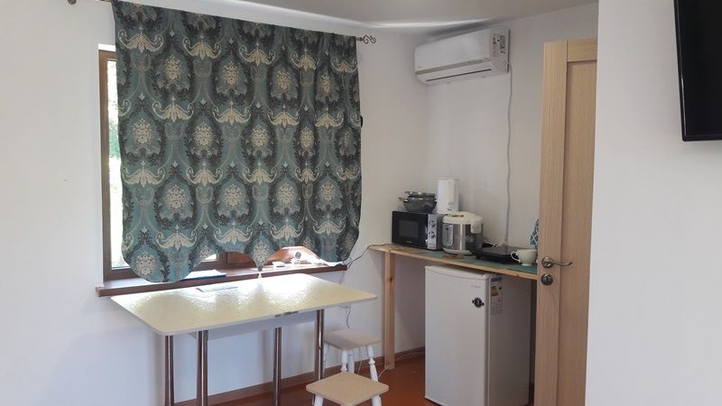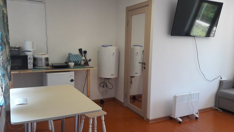 Предлагаются для отдыха 2 номера - однокомнатный на 4 человека и двухкомнатный на 6 человек. Санузел в номере: душевая система, гигиенический душ. Имеется кондиционер. Мини-кухня в номере: микроволновка, мультиварка, электроплита, холодильник, чайник, посуда.
