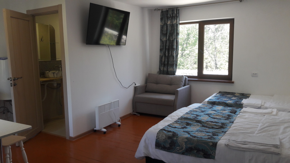 Отдельный вход со двора, кухня в номере, душ, 2 окна, на горы и во двор.