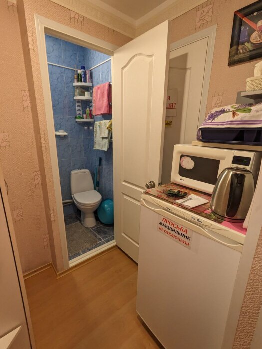 В номере есть микроволновая печь, посуда, утюг и гладильная доска.