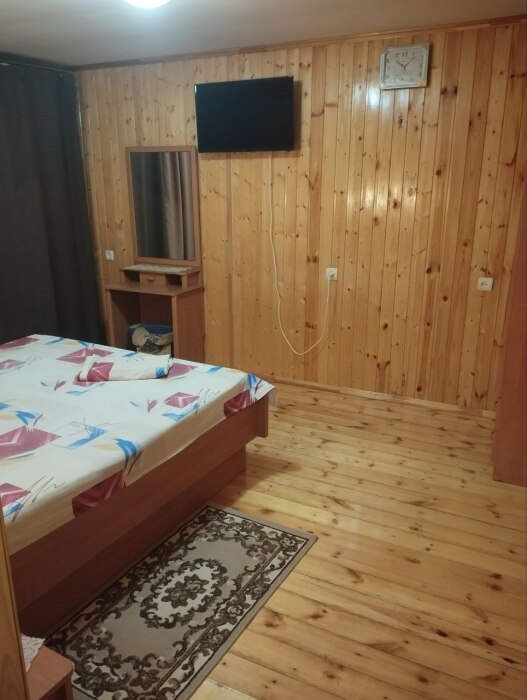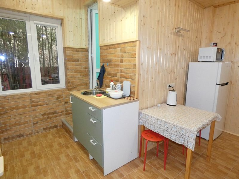 В доме установлено автономное отопление. На территории всего 5 номеров, в числе которых есть дом под ключ, а также 1-комнатные и 2-комнатные номера. У каждого номера своя оборудованная кухня. На 1 этаже могут комфортно разместиться до 8 человек, на 2 этаже - до 7 человек, что удобно для большой компании.