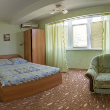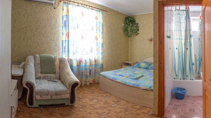 Номера просторные, оборудованы мягкой мебелью, кровати с ортопедическими матрацами, корпусная мебель, кондиционер, телевизор в каждом номере, ванная комната с душевой кабинкой, горячая и холодная вода круглосуточно.