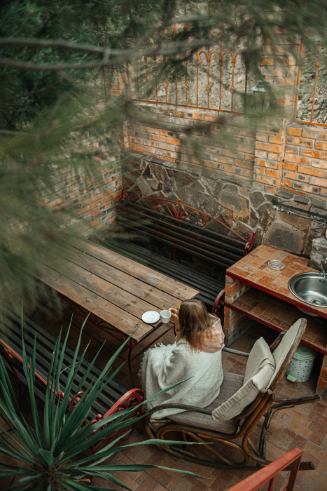 - Лоджия с живописным видом на можжевеловый лес⠀