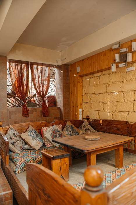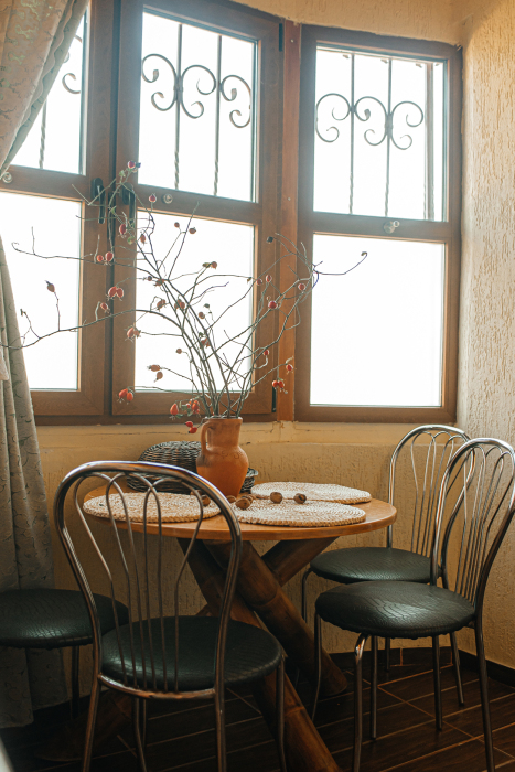 - Столик со скамейкой для отдыха рядом со входом в номер⠀