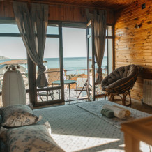 - В номере установлена решетка на дверь, поэтому вы можете не закрывать ее на ночь, и спать, наслаждаясь волшебным ароматом можжевелового леса