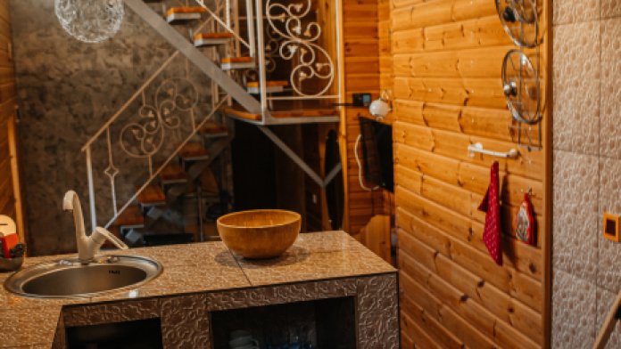 Таунхаус состоит из 5 номеров: 2 однокомнатных, 2 двухкомнатных двухуровневых и 1 трехкомнатный двухуровневый.