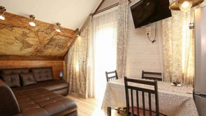 Особенность номеров: с хорошим ремонтом, обставлены качественной изящной мебелью. Отдых в такой приятной, домашней обстановке способен подарить только положительные и приятные воспоминания. Кроме того, гости каждого номера могут наслаждаться отдыхом на территории закрытого двора, оборудованного садовыми столиками и стульями.
