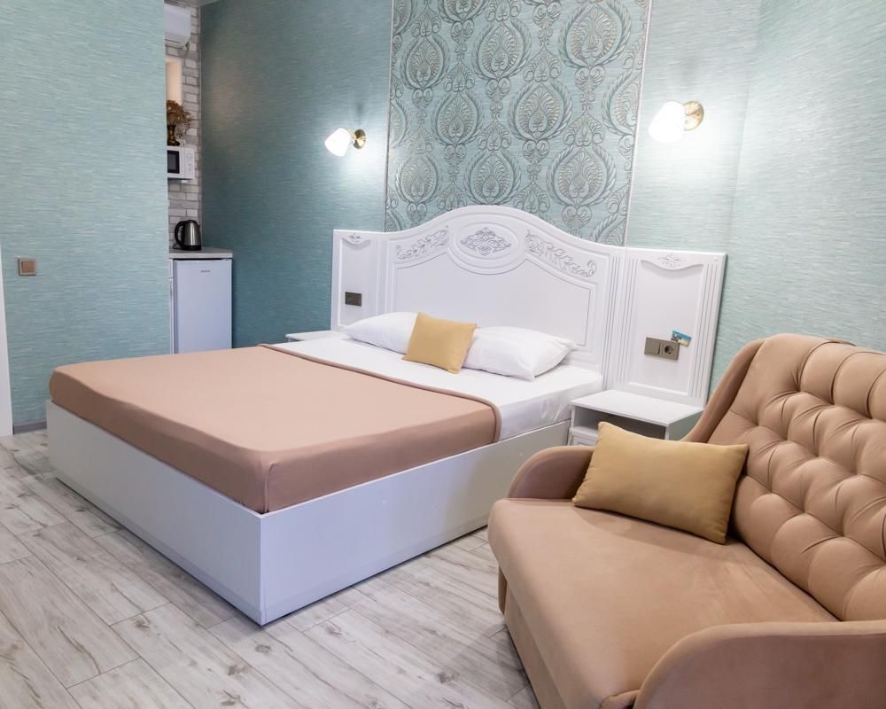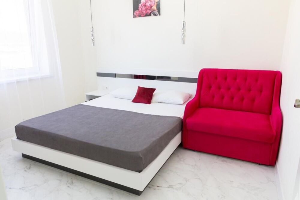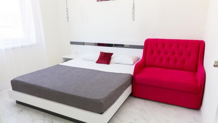 В номере: двуспальная кровать и раскладной диван,