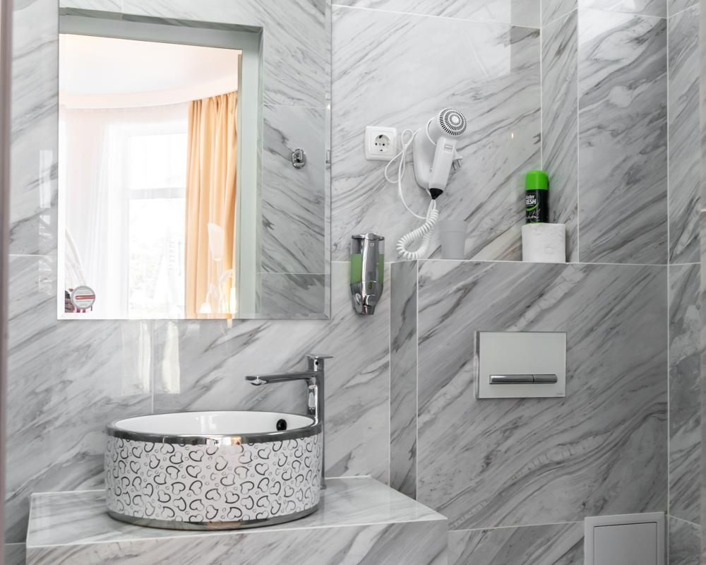 В номере: микроволновая печь, электрический чайник, холодильник, посуда. Полотенца, тапочки, фен, мыло, гель для душа.