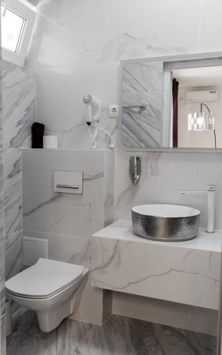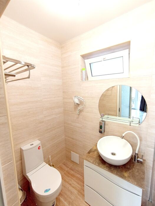 Всего в доме 10 номеров. Номера просторные, особенно 2-комнатные со своими кухнями. Душевые оборудованы фенами и средствами личной гигиены. Выдаются полотенца.