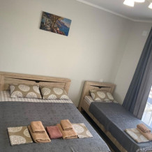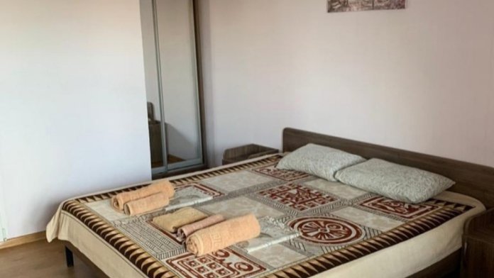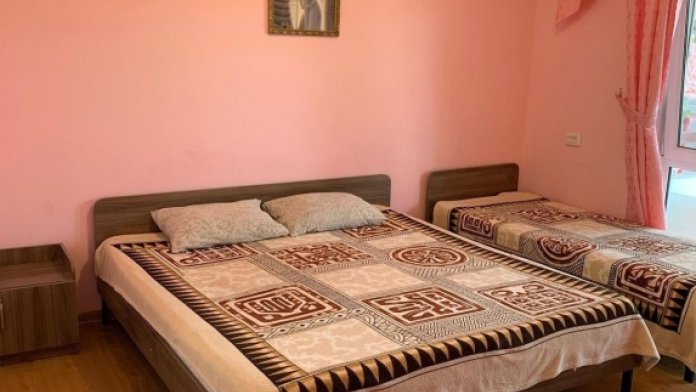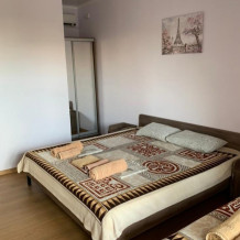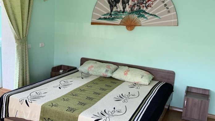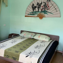 Студия со своей кухней. Расположен на 2 этаже. В номере 2-х спальная кровать , диван раскладной на 2 человека + доп. место. Кухня с кухонным оборудованием и набором посуды. Кондиционер, телевизор , холодильник , микроволновка все в номере. Вид из окна на море и горы. Полотенце и туалетную бумагу выдаём.