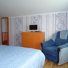 Номерной фонд нашего гостевого дома «Александра» - это 8 уютных современных отдельных домиков со всеми удобствами. Всего к вашим услугам 5 одноэтажных и 3 двухуровневых домика.