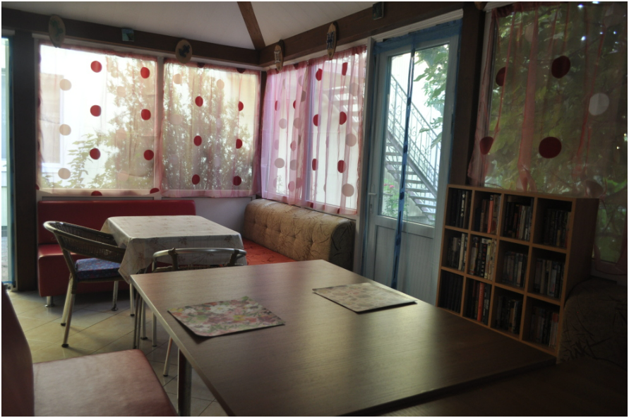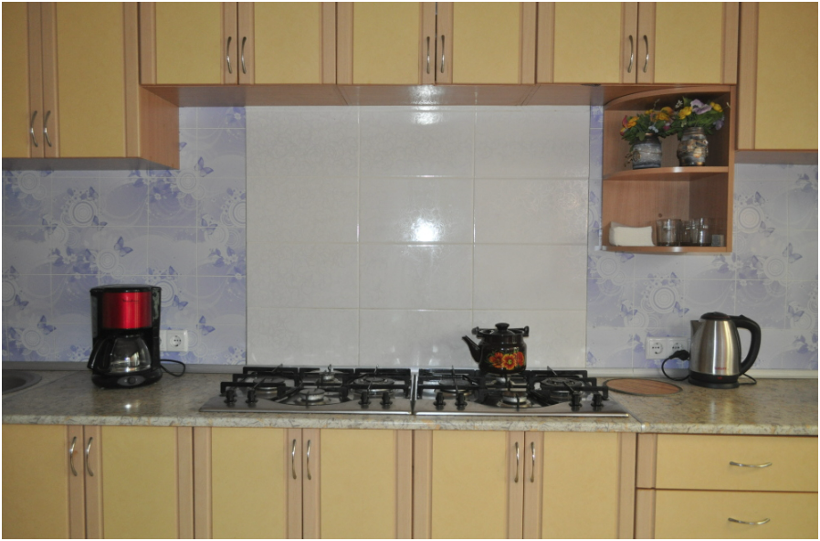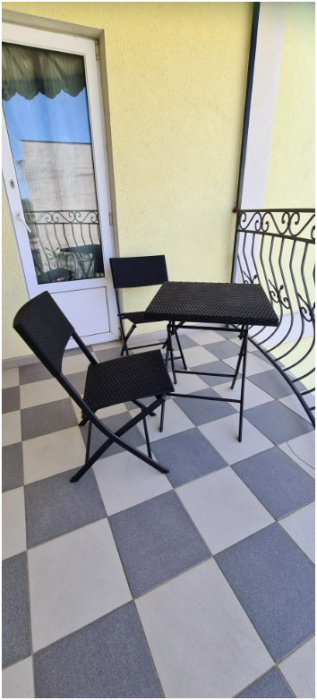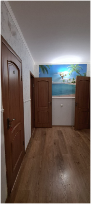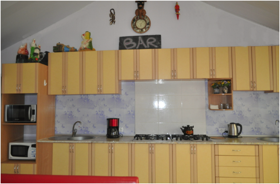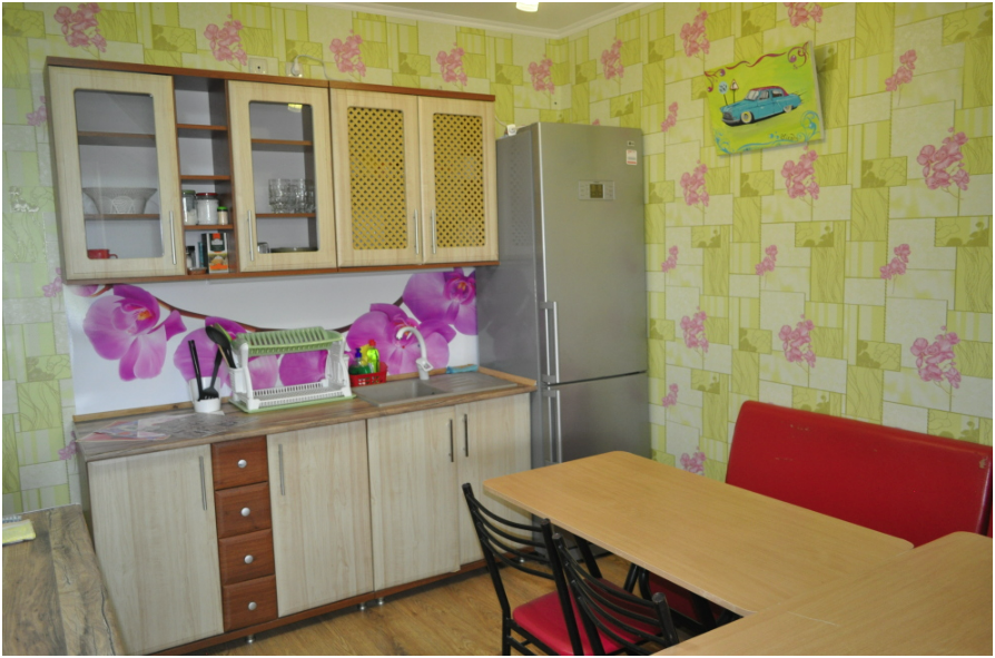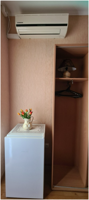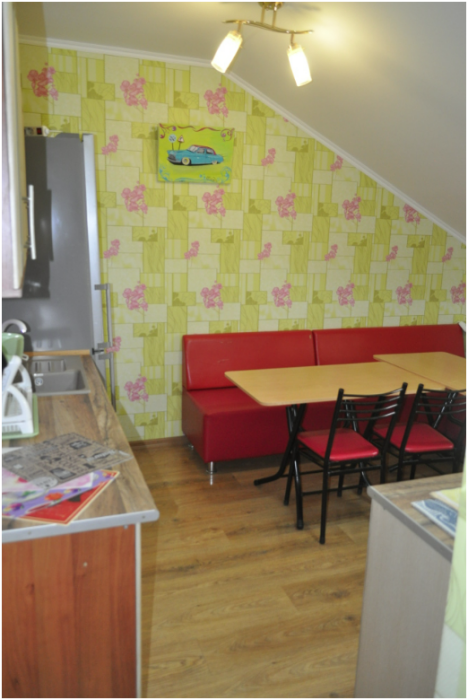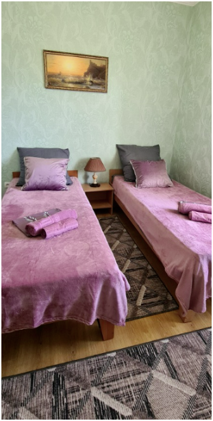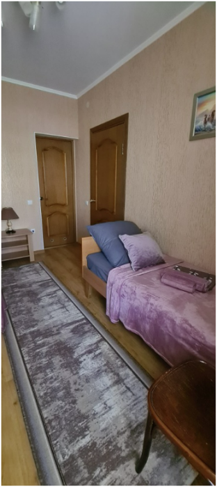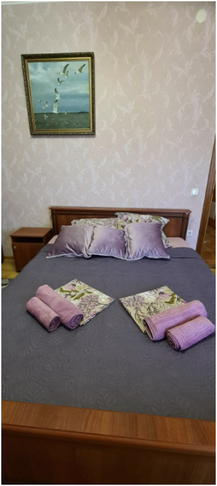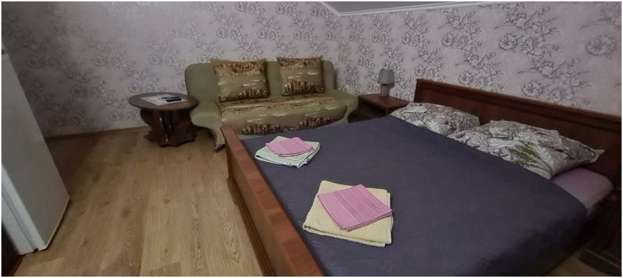 На 1-м и 3-м этажах расположены две общие оборудованные всем необходимым кухни для самостоятельного приготовления пищи. Имеются балконы – общие на 1, 2, 3 комнаты. На 3 этаже есть оборудованный для отдыха просторный балкон-терраса с выходом на кухню. Домашние уютные комнаты расположены на 3-х этажах. Во всех комнатах есть все необходимое для комфортного проживания: современная мебель, кондиционер, телевизор, Wi-Fi интернет. Вода холодная, горячая - круглосуточно. Гостям предоставляется бесплатная парковка авто под видеонаблюдением за территорией дома (при наличии свободных мест).