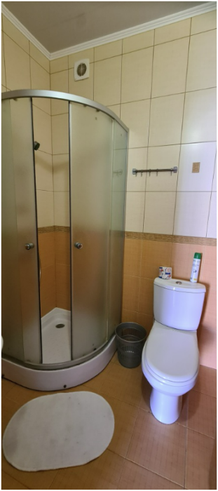 Находится на 3 этаже, оборудован 3 односпальными кроватями, санузел раздельный - 2 туалета и 2 душа на этаже предусмотрены на 4 комнаты.
