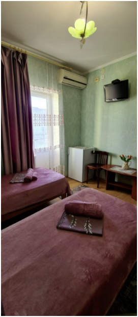 С двумя раздельными кроватями, с выходом на балкон, свой санузел оборудован всем необходимым.