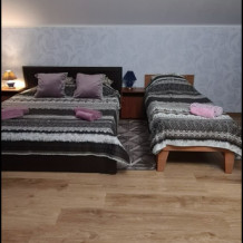 В одной комнате - 2-спальная кровать. Доп место - кресло кровать.
