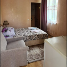 Уютный большой номер с двухспальной кровать на 2-м этаже. Доп. место - кресло кровать. Выход на балкон. Свой санузел в номере оборудован всем необходимым.