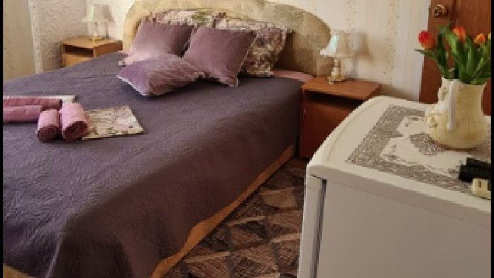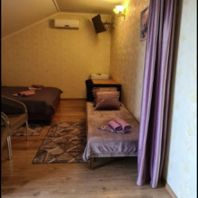 На 1-м и 3-м этажах расположены две общие оборудованные всем необходимым кухни для самостоятельного приготовления пищи. Имеются балконы – общие на 1,2,3 номера. На 3 этаже есть оборудованный для отдыха просторный балкон-терраса, с выходом на кухню. Домашние уютные номера разных категорий расположены на 3-х этажах. Во всех номерах есть все необходимое для комфортного проживания: современная мебель, кондиционер, телевизор, Wi-Fi интернет. Вода холодная, горячая - круглосуточно. Гостям предоставляется бесплатная парковка авто (при наличии свободных мест).