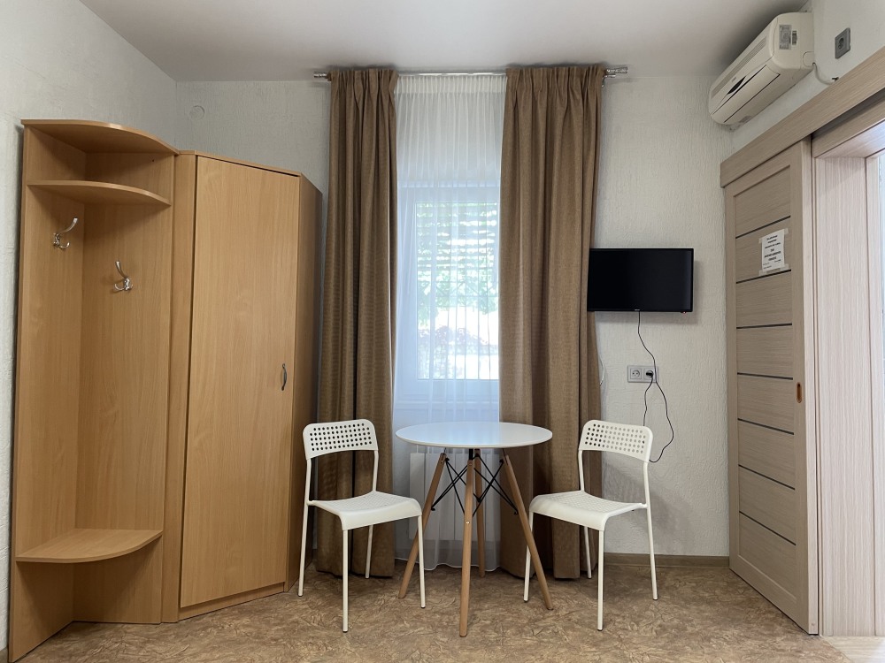 Улучшенные отдельные апартаменты на 2-3 чел с кухней (комната 14 кв.м + личная кухня-коридор + отдельный санузел с душем, кондиционер) с двуспальной и односпальной кроватями;