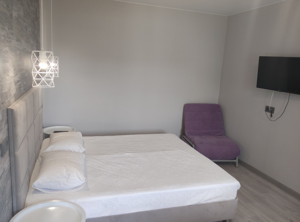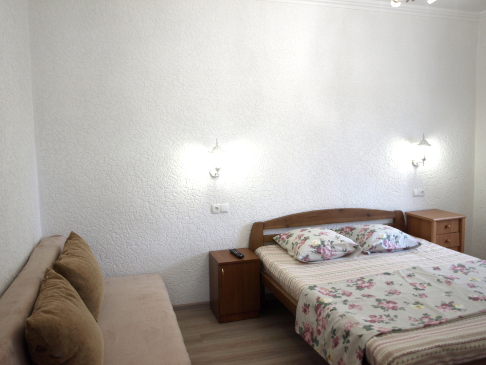 Отдельные 1-комнатные апартаменты класса «комфорт» на 2-4 чел. (спальня 14 кв.м, кухня 6 кв.м, санузел с душем, кондиционер) с двуспальной и диван-кроватью;
