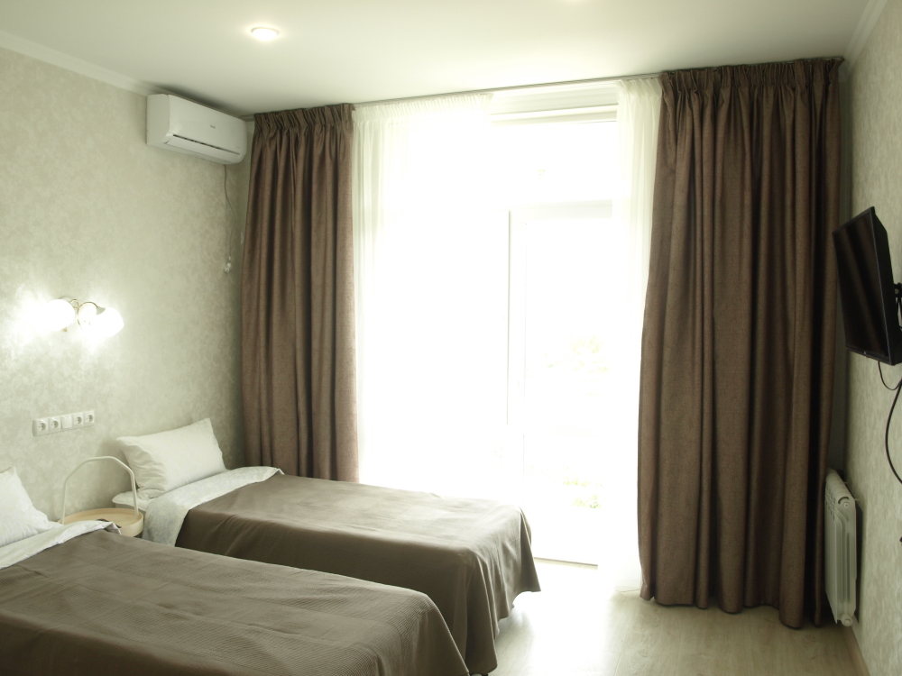 Отдельные 2-комнатные апартаменты класса «комфорт» на 2-5 чел. (2 спальни по 14 кв.м, кухня-холл 20 кв.м, санузел с душем, кондиционеры), в первой спальне кровать бокс спринг, во второй спальне кровать бокс спринг, в холле диван-кровать
