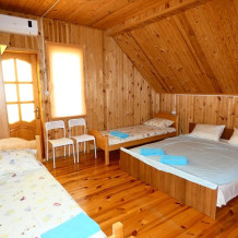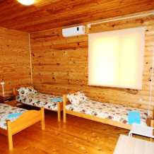 На территории есть общая кухня для самостоятельного приготовления, беседки для отдыха, тапчан, мангал, детская площадка, парковка, есть возможность пользоваться стиральной машиной, для маленьких детей предоставляется кровать-манеж.
