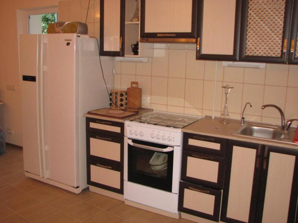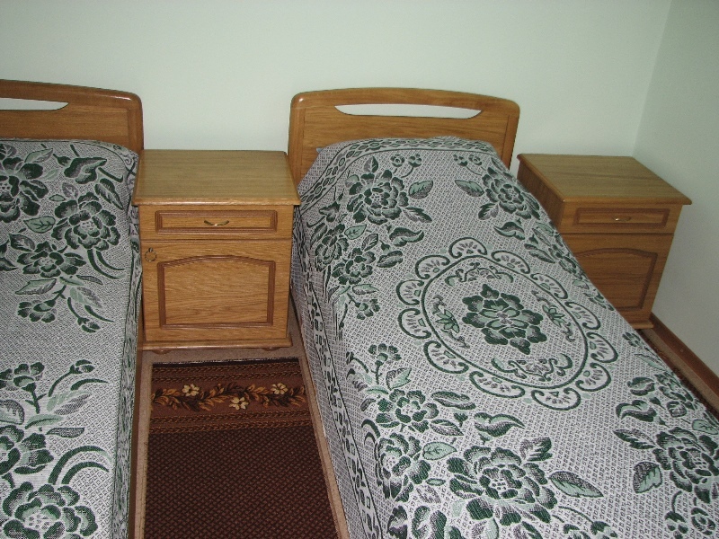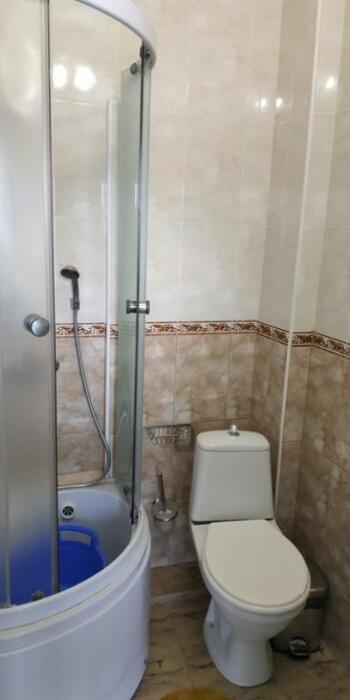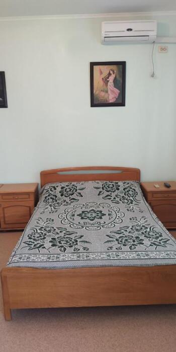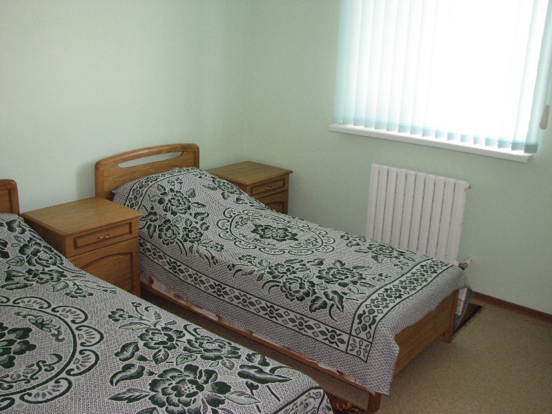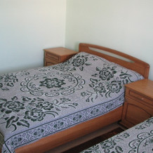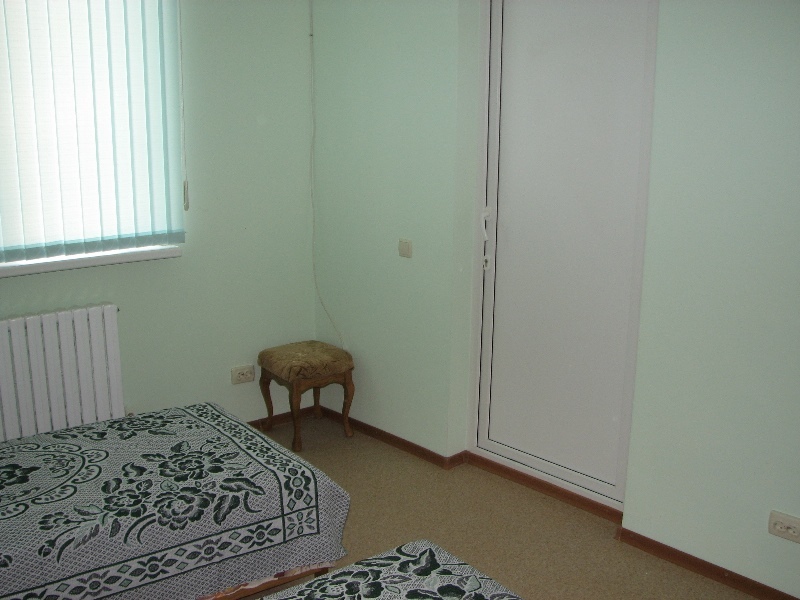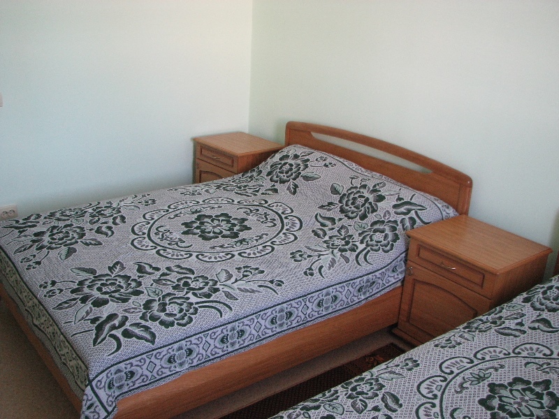 Для отдыха предлагается современный двухэтажный дом, с террасы которого Вы можете любоваться зеленым цветущим садом, уютно разместившись в креслах из ротанга. На первом этаже расположены гостевой 2-комнатный 4-местный семейный номер, общая кухня с электроплитой, с духовкой, большим двухкамерным холодильником, микроволновкой, стиральной машиной. На кухне имеется вся необходимая посуда для приготовления пищи, а также столовые, чайные, кофейные сервизы и все необходимое для комфортного приема пищи. Двери гостевого номера и кухни выходят на террасу, на которой также расположены ротанговые кресла и небольшой столик для отдыха и чаепития, гладильная доска с утюгом, сушилка для белья. По пологой лестнице от входа в коттедж можно подняться на террасу второго этажа, на которую выходят двери четырех гостевых номеров – двух 2-местных, 3-местного и 1-местного с диван-кроватью. На террасе второго этажа также имеются сушилки для белья и диванчик из ротанга.