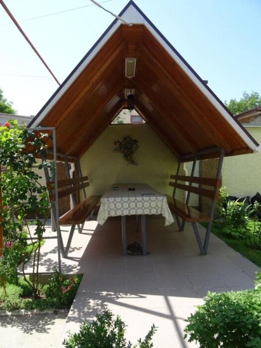 Для удобства гостей рядом с клумбами имеется крытая беседка со скамейками и столом, где можно уютно посидеть за чашкой любимого напитка, почитать или позаниматься с ноутбуком, планшетом, смартфоном. На всей территории пансионата бесплатный круглосуточный Wi-Fi. Также во дворе по желанию можно расставить теннисный стол, принадлежности для тенниса имеются.