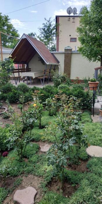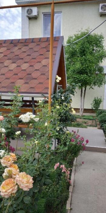 Во дворе все лето цветут розы и другие разнообразные цветы, обилие зелени приятно радует взгляд.