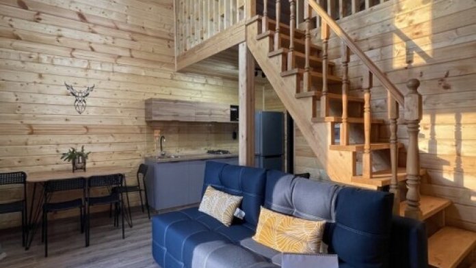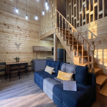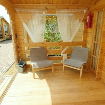 На закрытой территории базы отдыха 15 современных деревянных домиков. Это экологичные комфортабельные домики, построенные из природных материалов, со здоровым микроклиматом.