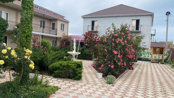 Гостевой дом «Зеленый дворик» находится в Саки. Поблизости от гостевого дома имеются фирмы, организующие экскурсии, поликлиника, продовольственные маркеты, банкомат Сбербанка, торговые ряды, взрослые и детские аттракционы, кафе и столовые, остановка транспорта. До песчаного пляжа 7-8 минут ходьбы.До базы отдыха «Прибой»-7-8 минут ходьбы